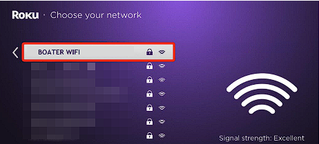You should now see a list of available WiFi networks. Use the arrow buttons to find BOATER WIFI and press the OK button on your remote.