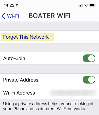 And that's it! The Wi-Fi network will be removed from your iPhone's list of available networks. If you ever need to connect to BOATER WIFI or your private network again, you'll have to enter the password. Note: The exact steps might vary slightly depending on your iPhone or iPad model. If you're still stuck, you can always reach out to us!