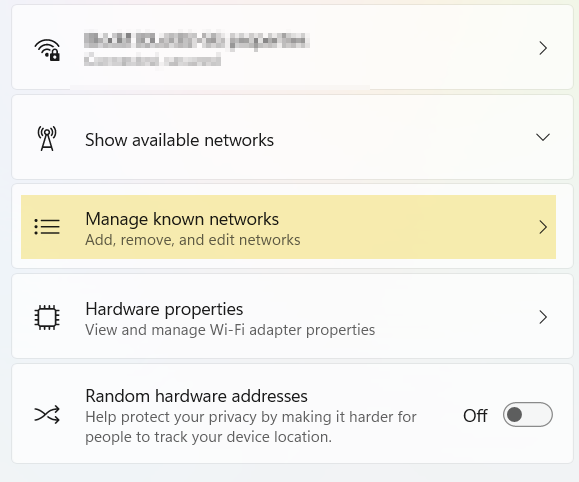 Scroll down a little until you see something called Manage known networks. Click on that! This is where your computer stores all the Wi-Fi networks it remembers.