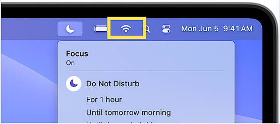 First, look at the top right corner of your Mac's screen. You should see a little symbol that looks like waves. This is the Wi-Fi symbol.