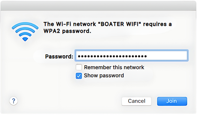 ** If you forgot the password to your custom Wi-Fi, please send us an email to: support@boaterwifi.net or text/call us at: 949-850-WIFI (9434)