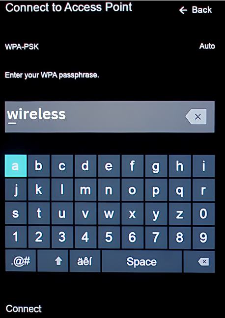 Once you select your network, your TV will ask for the password. Type the password wireless