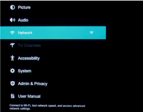 Once you’re in the menu, you’ll see a list of different options on the screen. Click "All Settings" or "Network" or "Network Settings." Use the arrow buttons on your remote (they’re around the circular "OK" button in the middle) to move up, down, left, or right until you highlight "Network", and Choose Wireless.